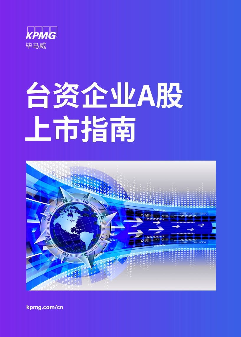 毕马威华振会计师事务所(特殊普通合伙)特别出版《A股上市指南》系列刊物,包含:《前进资本市场-A股上市指南》和《台资企业A股上市指南》,希望能够分享审核常见问题及A股上市的实操经验,为有意于A股上市的企业提供参考,使其在规划上市前对资本市场概况、上市基本要求、上市流程、应关注重点及最新监管政策等有初步的了解与认知,在进行规划时可以针对上市过程中所面临的问题提早拟定解决方案, 协助更多优质的企业顺利完成A股上市。
