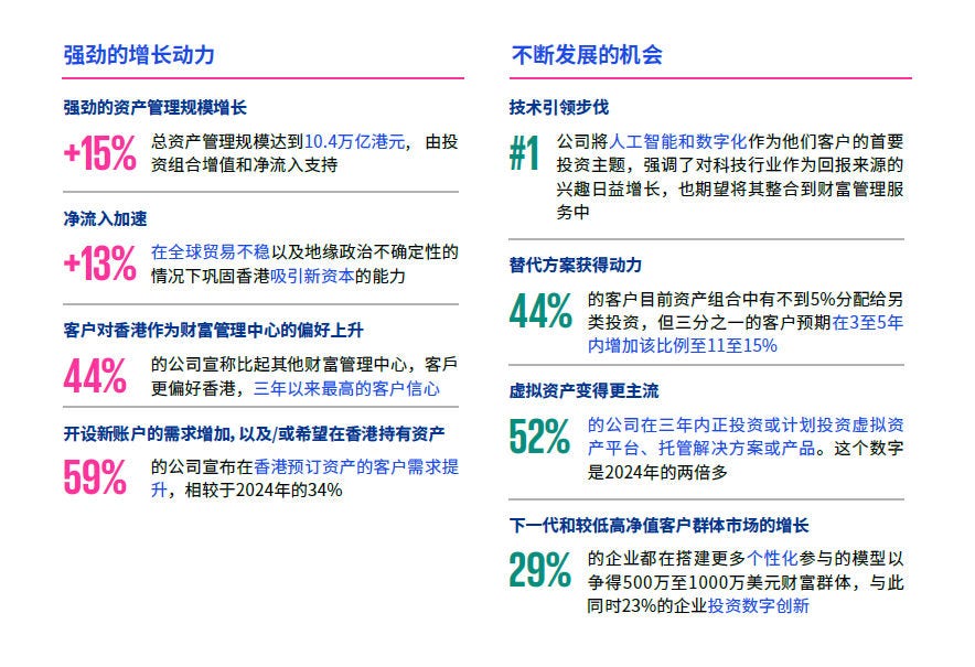 本报告的研究结果基于对PWMA会员机构的问卷调查,并辅以对香港行业高管的访谈。问卷调查和访谈于2025年6月至8月期间进行,约有80%的公会私人财富管理(PWM)机构会员参与。今年,我们还收集了来自9家从事资产管理业务的PWM生态系统会员,以及5家涉及数字资产或交易所的非会员公司的反馈意见。