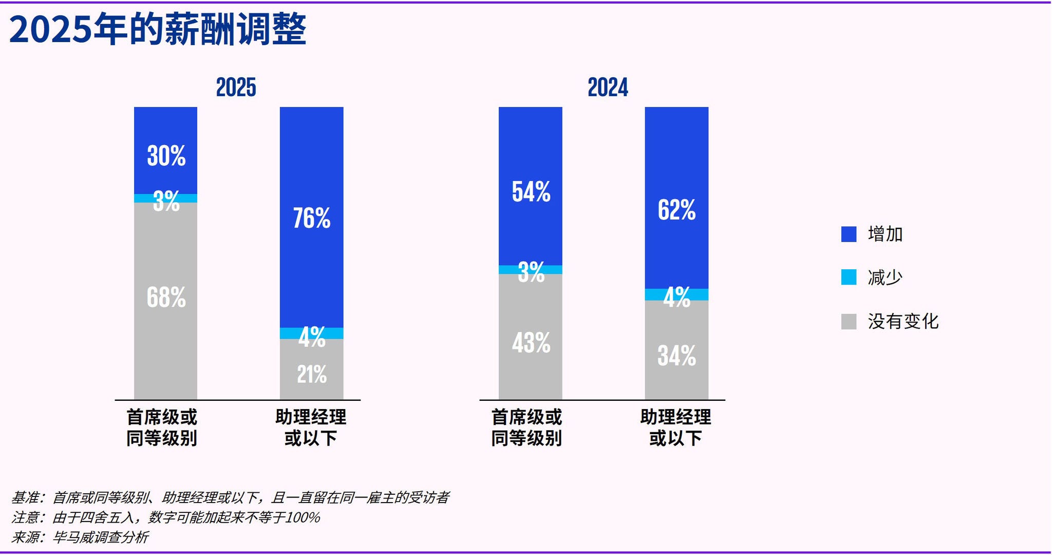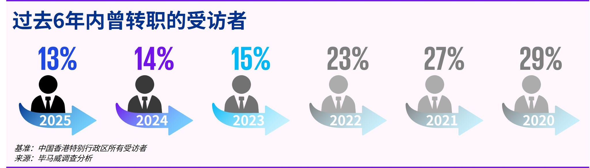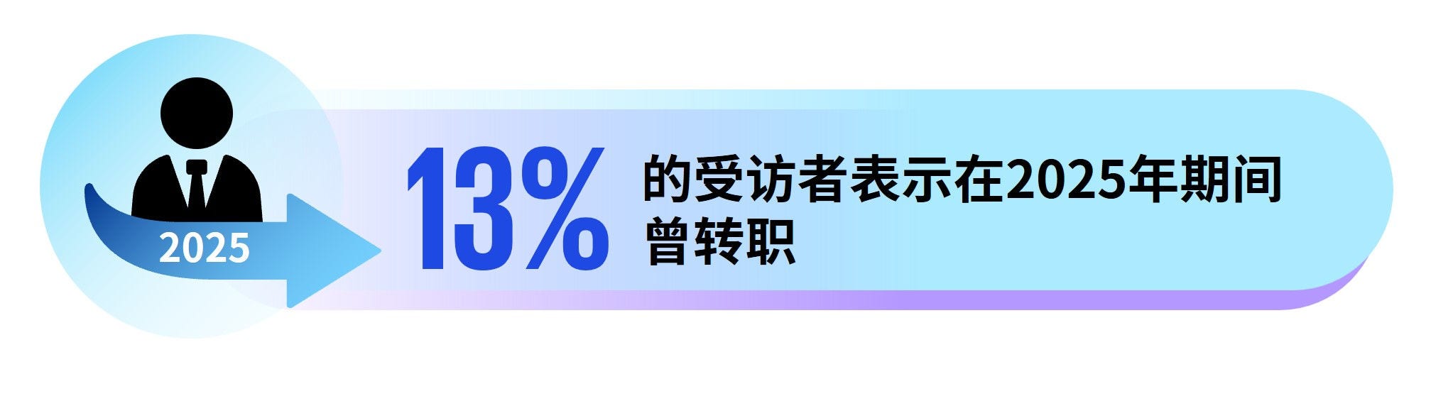 13%的受访者表示,在2025年期间曾转职,在包括 IT、公共服务、消费品市场及金融服务在内的主要行业保持与过去两年相似的水平。在2025期间曾转职的受访者中,75%表示薪资有所提升, 比2024年增加了9%。