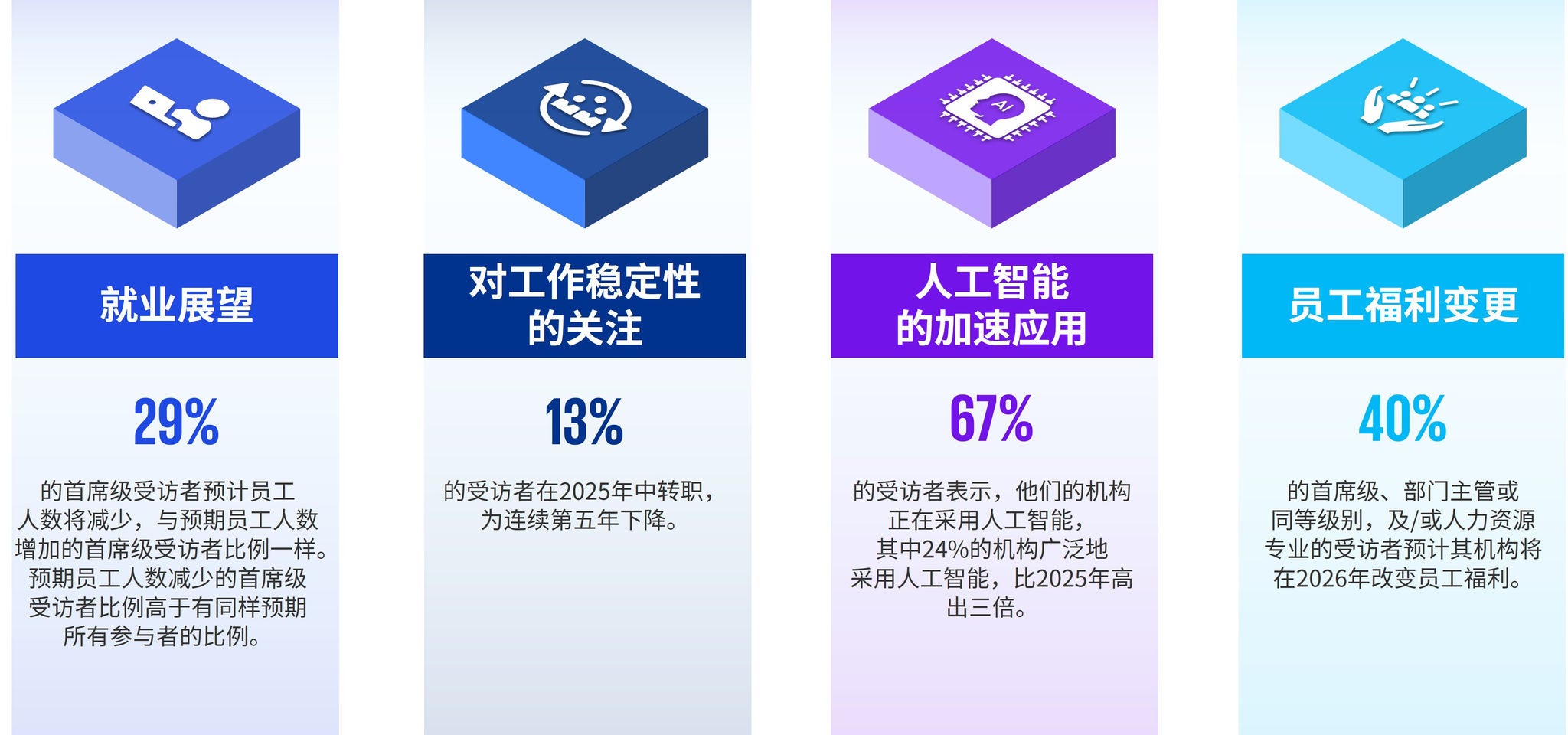 有21%的受访者表示将在2026年积极寻找新雇主,这一比例较去年的28%有所下降。在留任同一雇主的员工中,有63%获得了加薪,整体来看,职场人士在寻找新职位时正采取“观望”态度。