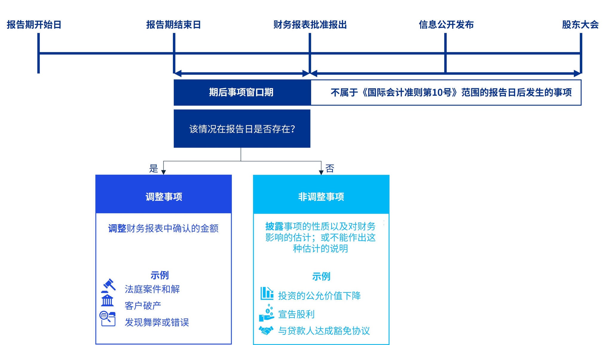 - 识别出直至财务报表批准报出日发生的所有期后事项,考虑并确定这些事项是否属于调整事项——即,为报告日已经存在的情况提供证据或是表明持续经营假设不再适当的事项。