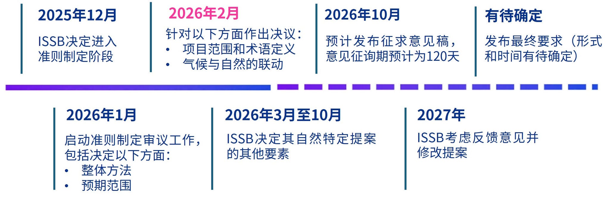 ISSB预计在2026年10月发布征求意见稿,随后进入意见征询和修订阶段。