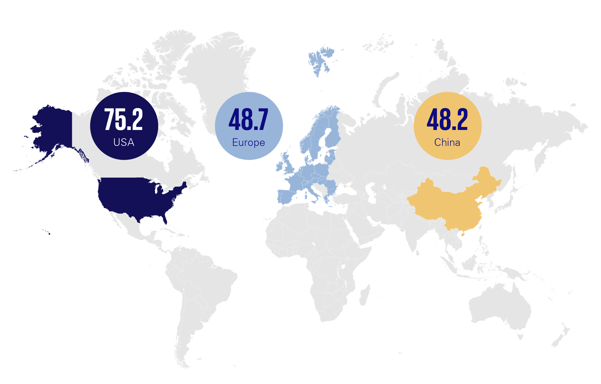 Our Strategic AI Capability Index (SACI) enables a comparison of the AI capabilities of the United States, Europe and China.