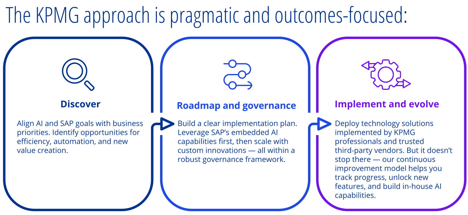 KPMG firms bring together deep industry experience, advanced SAP knowledge, and a business-led, value-driven approach to AI transformation. From strategy through to implementation and beyond, we can help organizations embed AI responsibly, at scale, and for measurable impact.