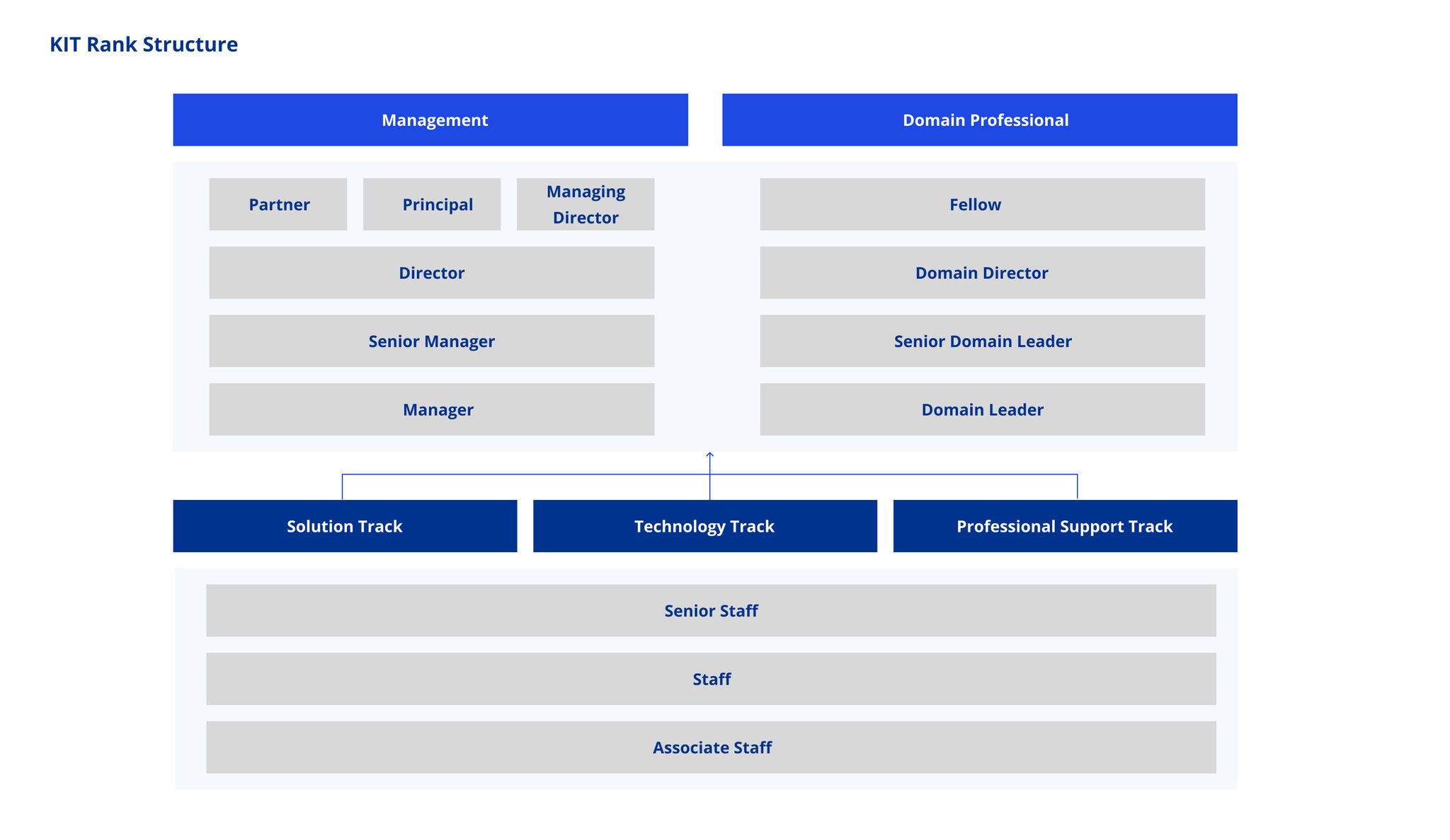 KPMG Ignition Tokyo (KIT)では、メンバーの役割やキャリア志向に応じて、ランクに応じて異なるトラックが設けられています: