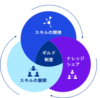 ギルド制度とは、KPMG Ignition Tokyoのメンバーによって構成される、共通のスキルセットに基づいた組織です。Guilds(ギルド)を通じて、私たちは成果のあるデリバリーと、メンバーの成長・能力開発を支援しています。