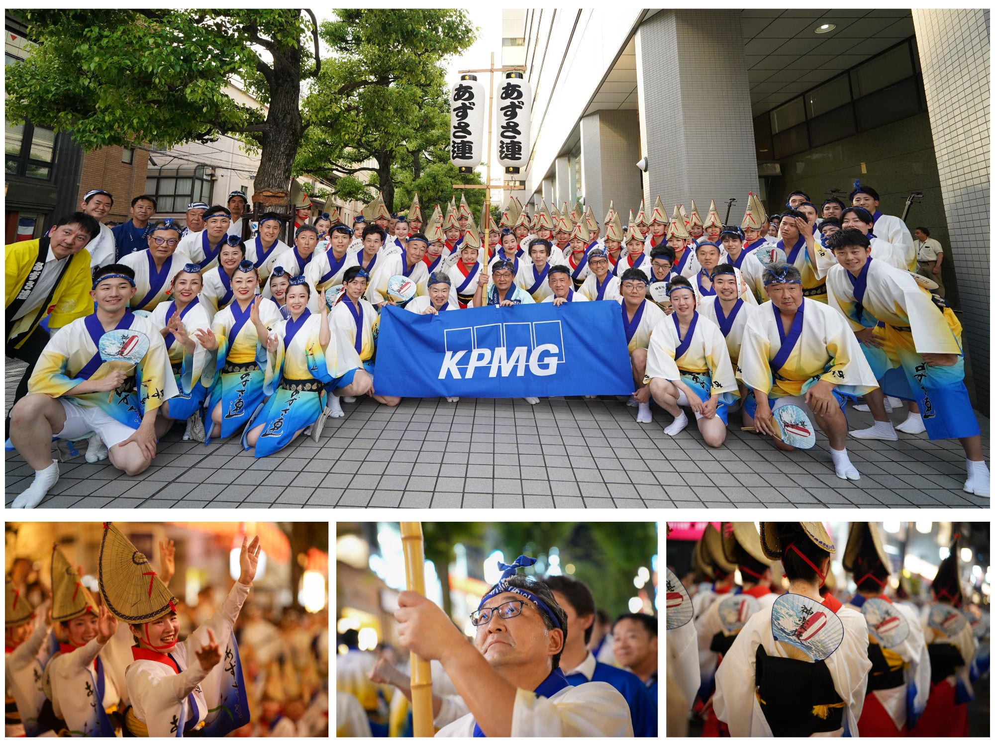 KPMGジャパンの有志約100名が、第51回神楽坂まつり阿波踊り大会に「あずさ連」として参加しました。踊り手75名、出陣式や着付けの準備などのスタッフ30名超が一体となり、神楽坂の夜を盛り上げました。