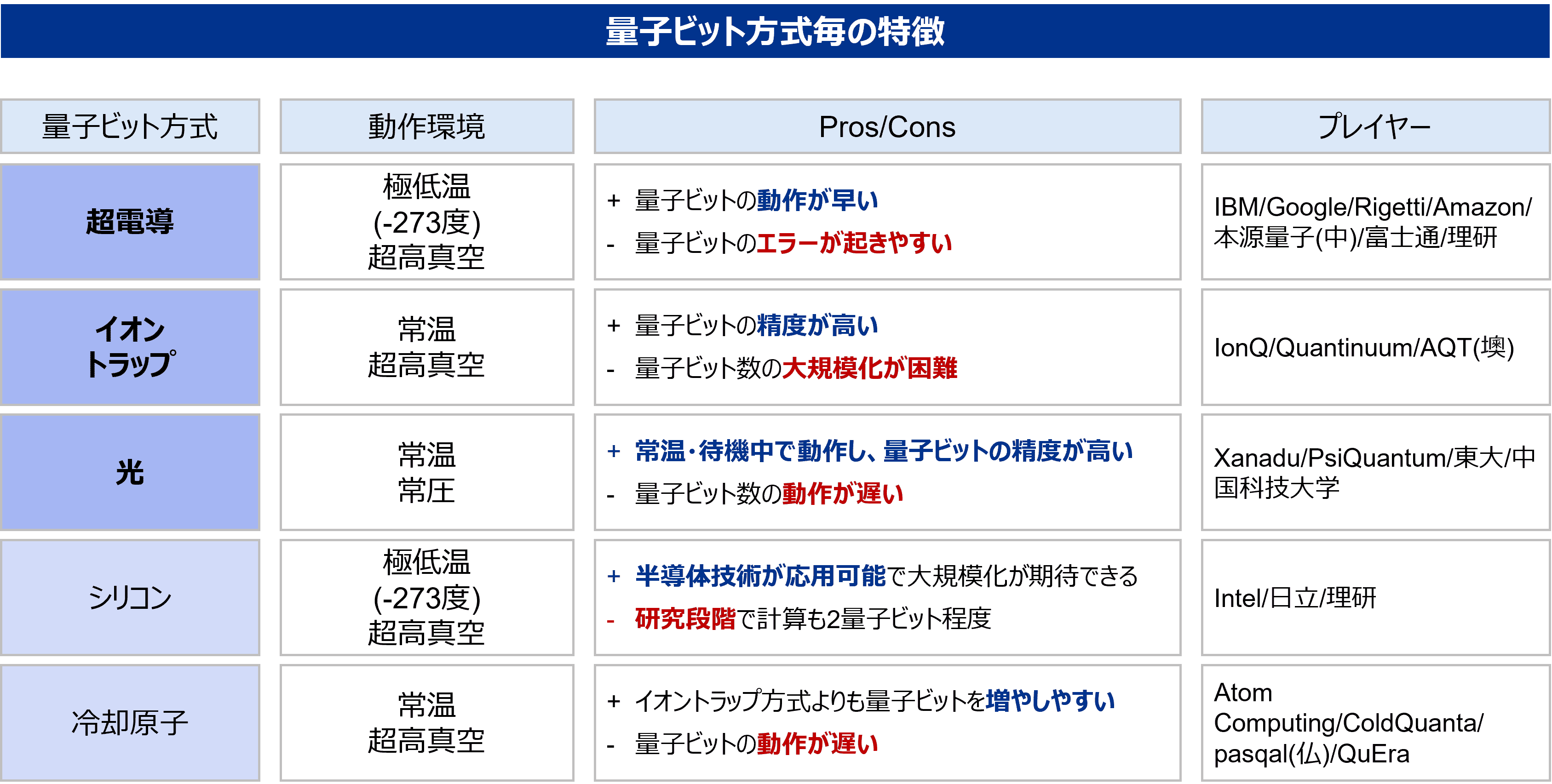 図表3:量子ビット方式毎の特徴