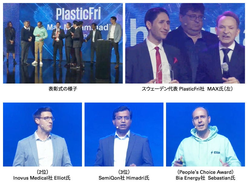 優勝したのは、農業廃棄物をプラスチックに代わる環境に優しい製品に変える画期的な技術を持つスウェーデン代表のPlasticFri社で、その他聴講者からの投票によるPeople’s Choice賞は、コロンビア代表のBia Energy社が受賞する結果となりました。