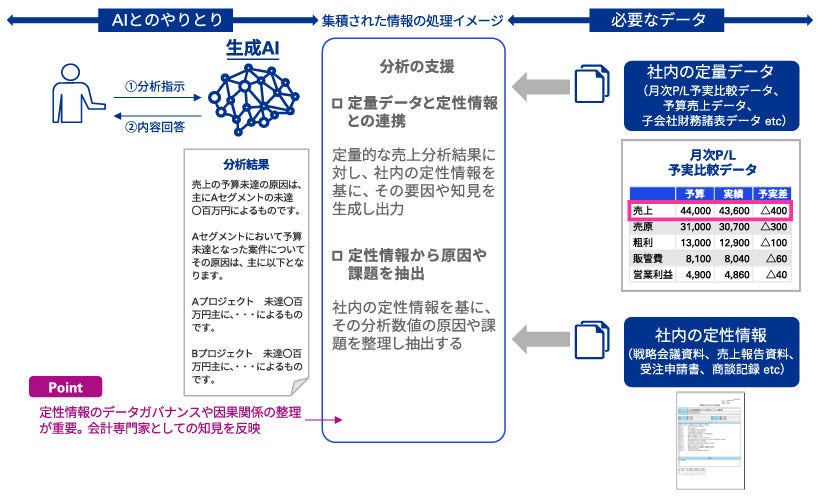 - 生成AIの倫理的対応:生成AIが財務経理領域で使用される際に生じる倫理的な課題やリスクを特定し、解決策や対策を提案します。また、生成AIの適切なガバナンスや管理体制、ガイドラインやポリシー、教育や啓発活動などを支援します。