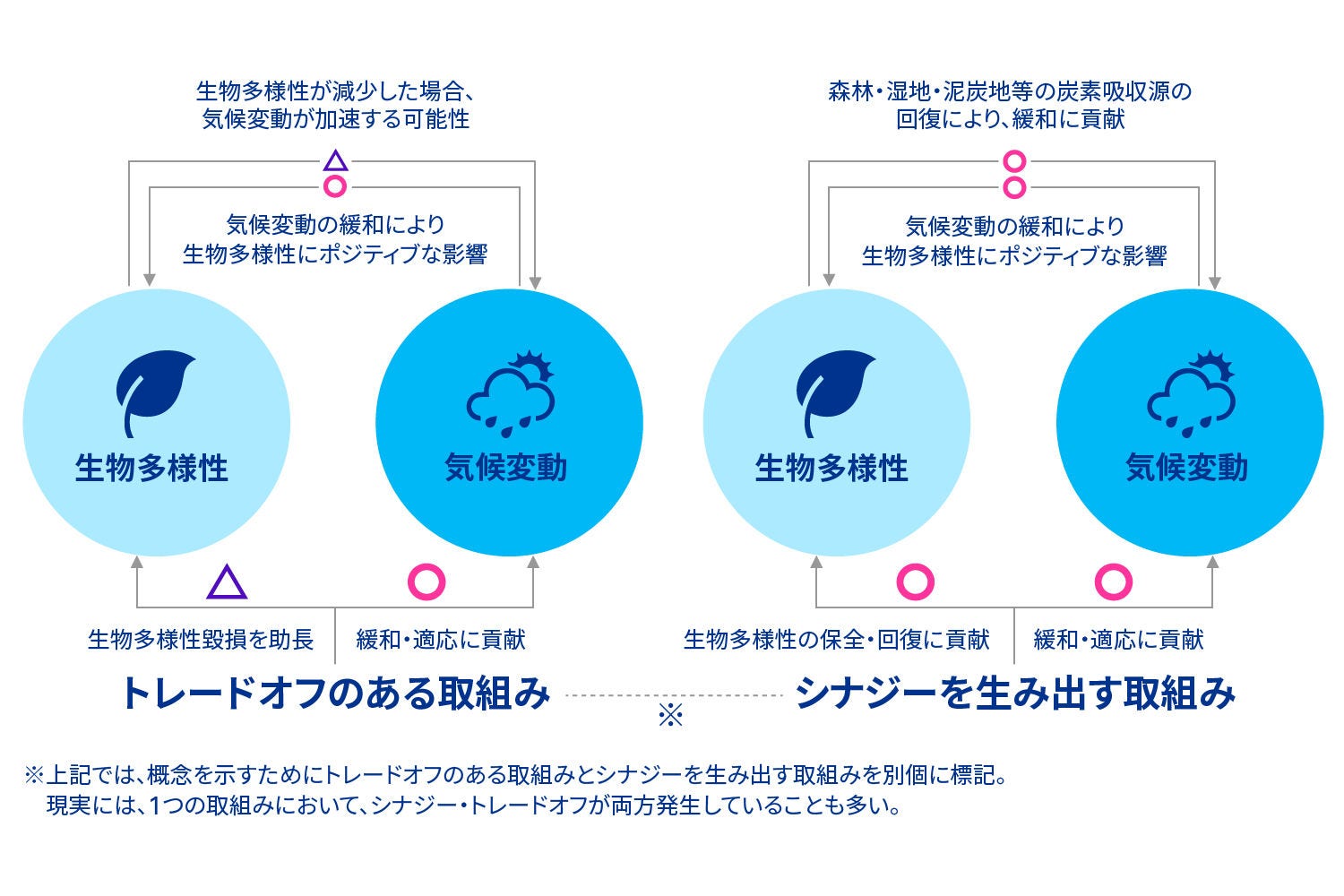図表2 気候変動と生物多様性のトレードオフ・シナジーの一例