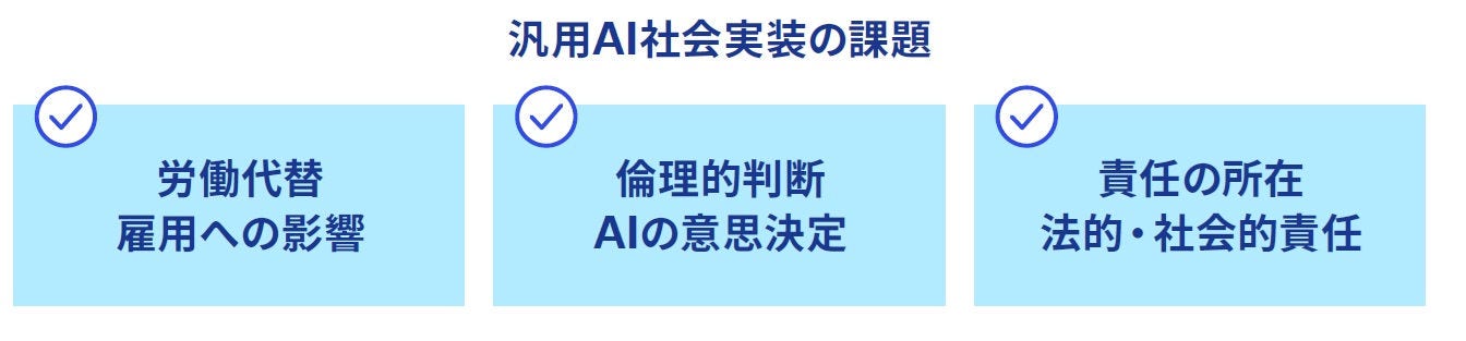 今後、社会が汎用AIをどう受け入れるかによって、その普及や実装のスピードが左右されるでしょう。