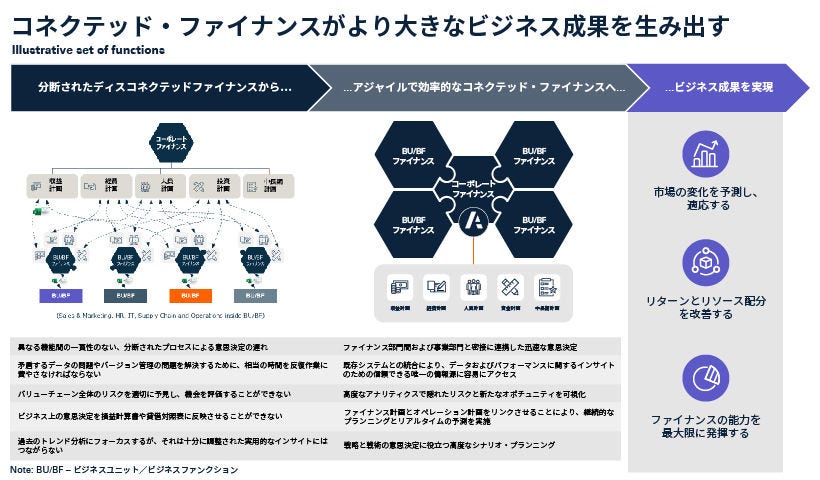 現状、多くの企業では収益やコストがバラバラに管理され、一元化されていません。最初の一歩は、CFO組織内でデータを統合する「コネクテッド・ファイナンス」の実現です。そこから、サプライチェーン・セールス・マーケティング・ITなどオペレーショナルなデータを含む全社的な「コネクテッド・プランニング」へと発展させることで、CFO・CEOが適切な判断を行える環境が整います。実現には時間と試行錯誤が必要ですが、まずは足元のファイナンス組織からデータドリブンな経営に着手できるようソリューションのご提案ができればと思っています。