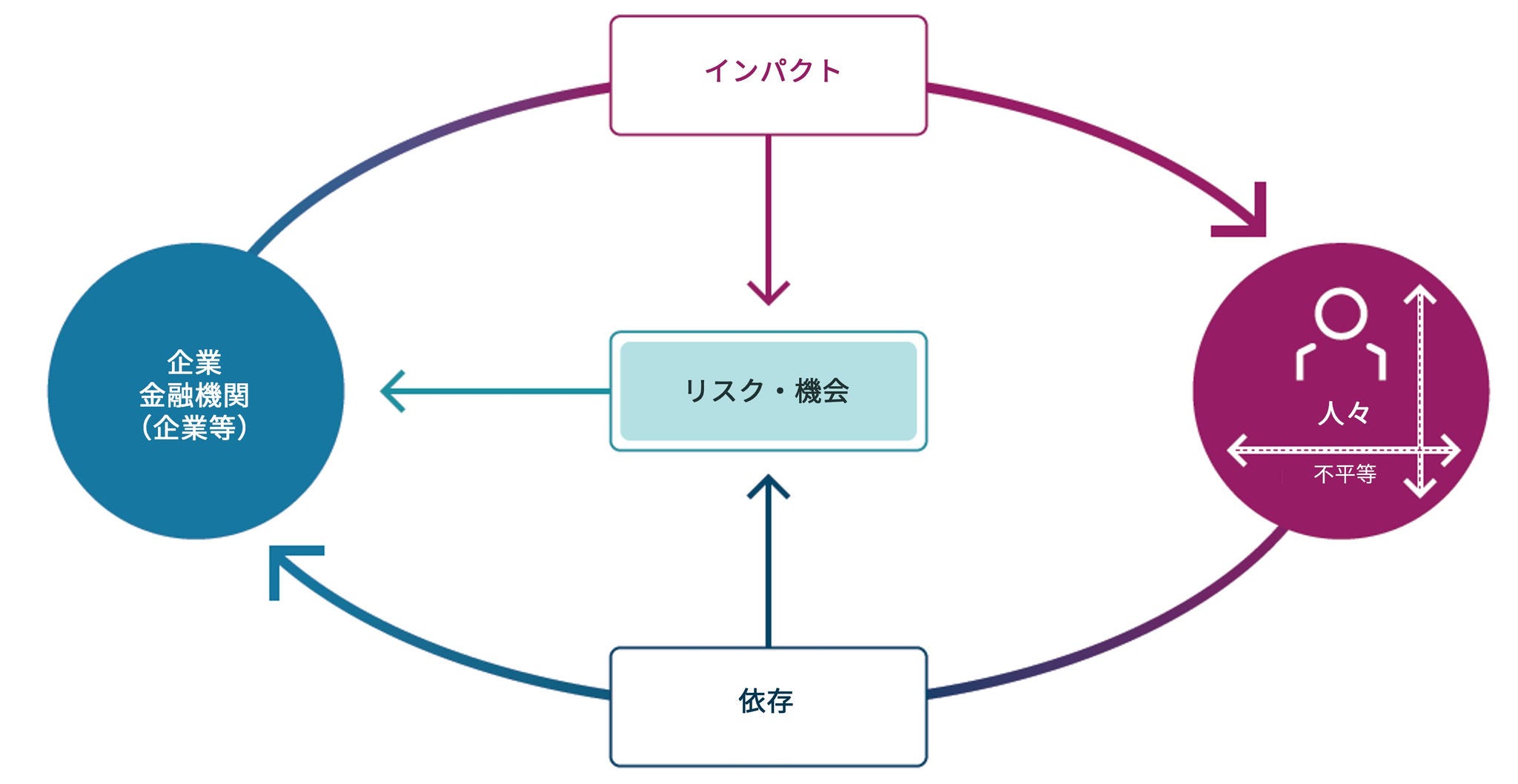 図表3.不平等および社会関連のインパクト、依存関係、リスク、機会の関係図