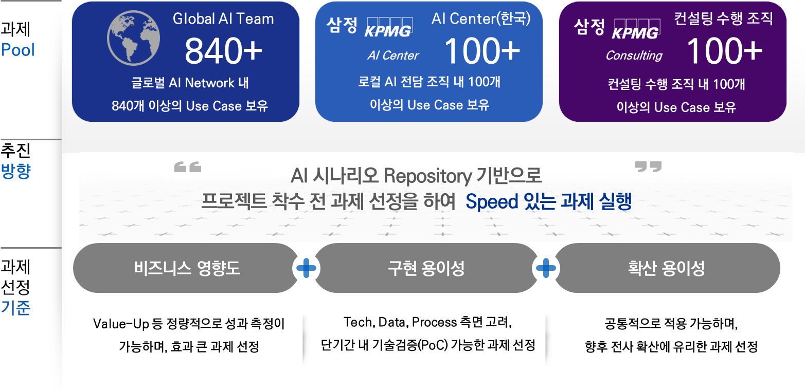- 글로벌·국내 AI Use Case Repository : 1,000개 이상의 실증 사례 기반 과제발굴 체계