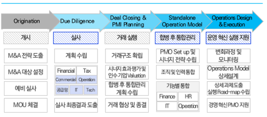 - Deal Advisory 와 협업을 통해 실사, 인수자문, PMI 및 T/A 까지 One-Stop 서비스 가능