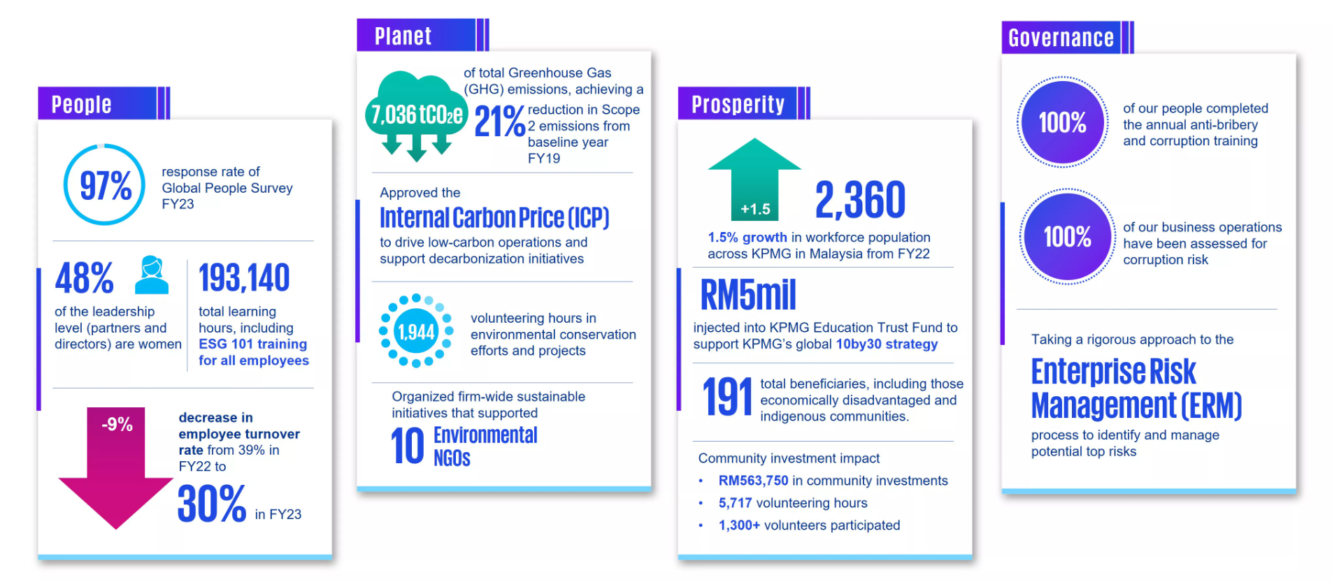 KPMG in Malaysia presents the FY2023 update of our environmental, social and governance (ESG) commitments — holding us accountable for progress towards a more sustainable future.