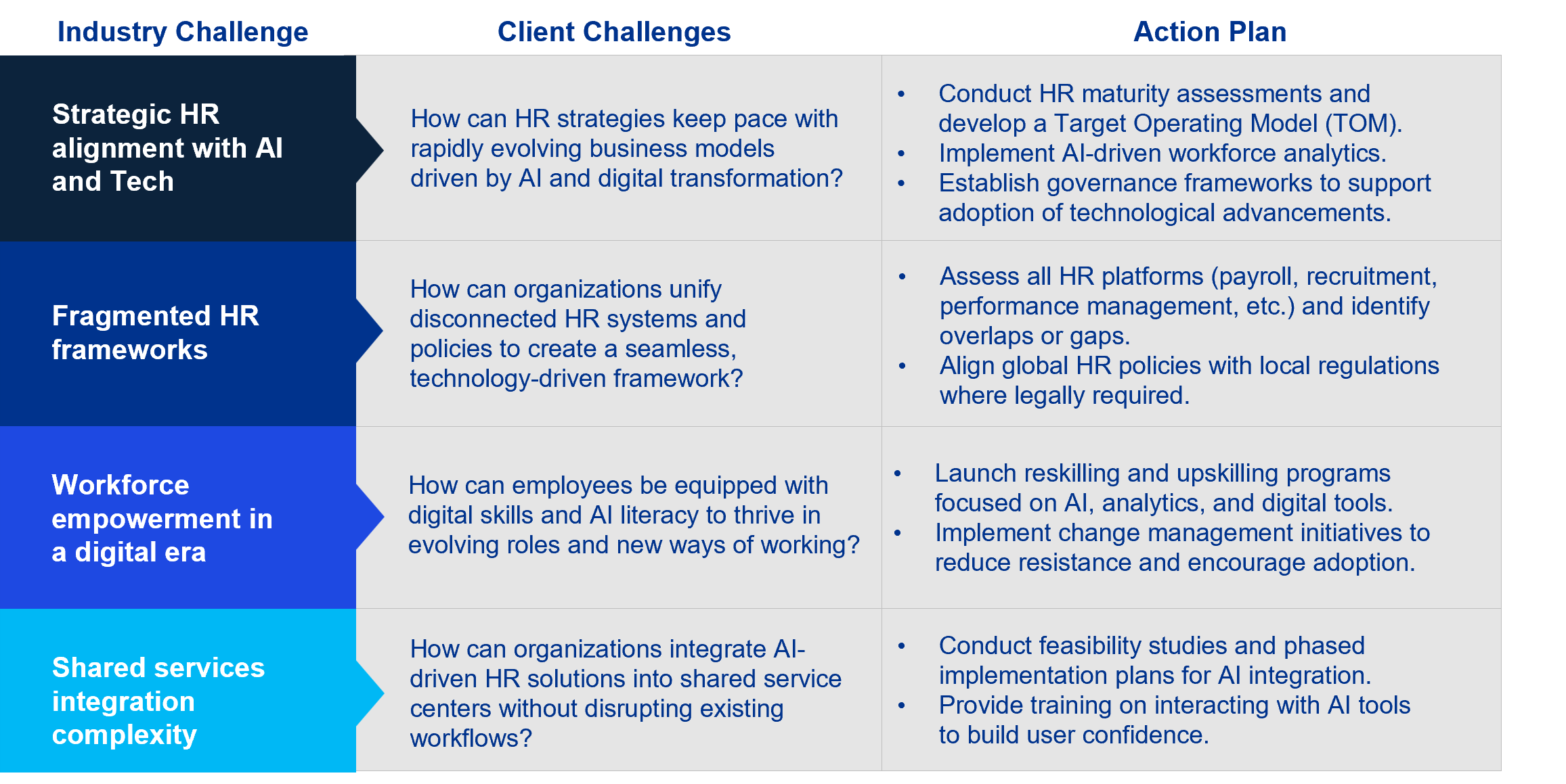 From leveraging AI-driven analytics for workforce planning to implementing intelligent HR platforms that streamline processes, transformation empowers HR to become a strategic partner in driving innovation and growth. This is critical for both traditional organizations and shared services models, where centralized operations and technology-driven efficiencies can significantly reduce costs and enhance service delivery.