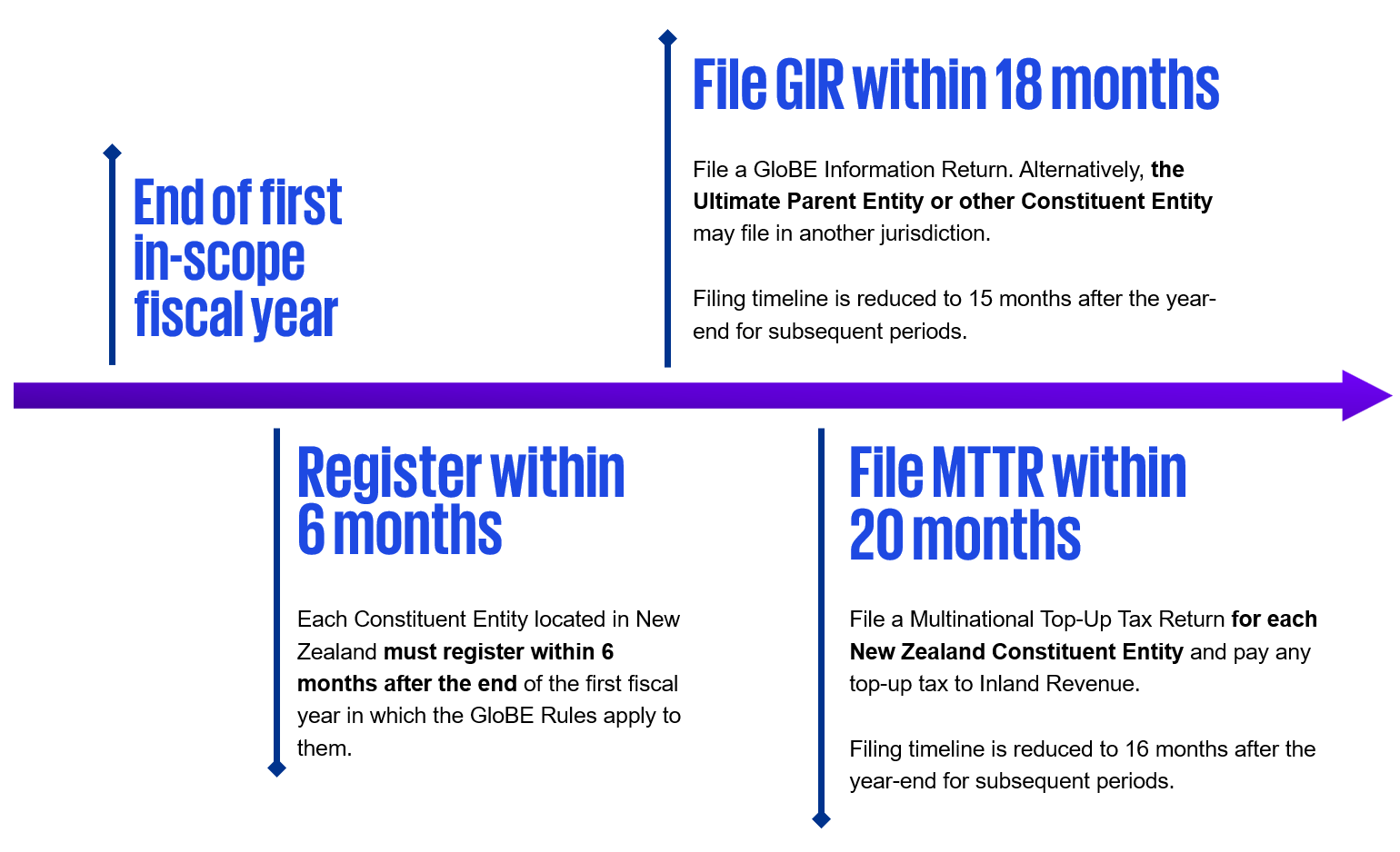 The following summary provides an overview of New Zealand's registration and compliance requirements under the GloBE Rules, designed to support in-scope MNEs in developing their compliance programmes.