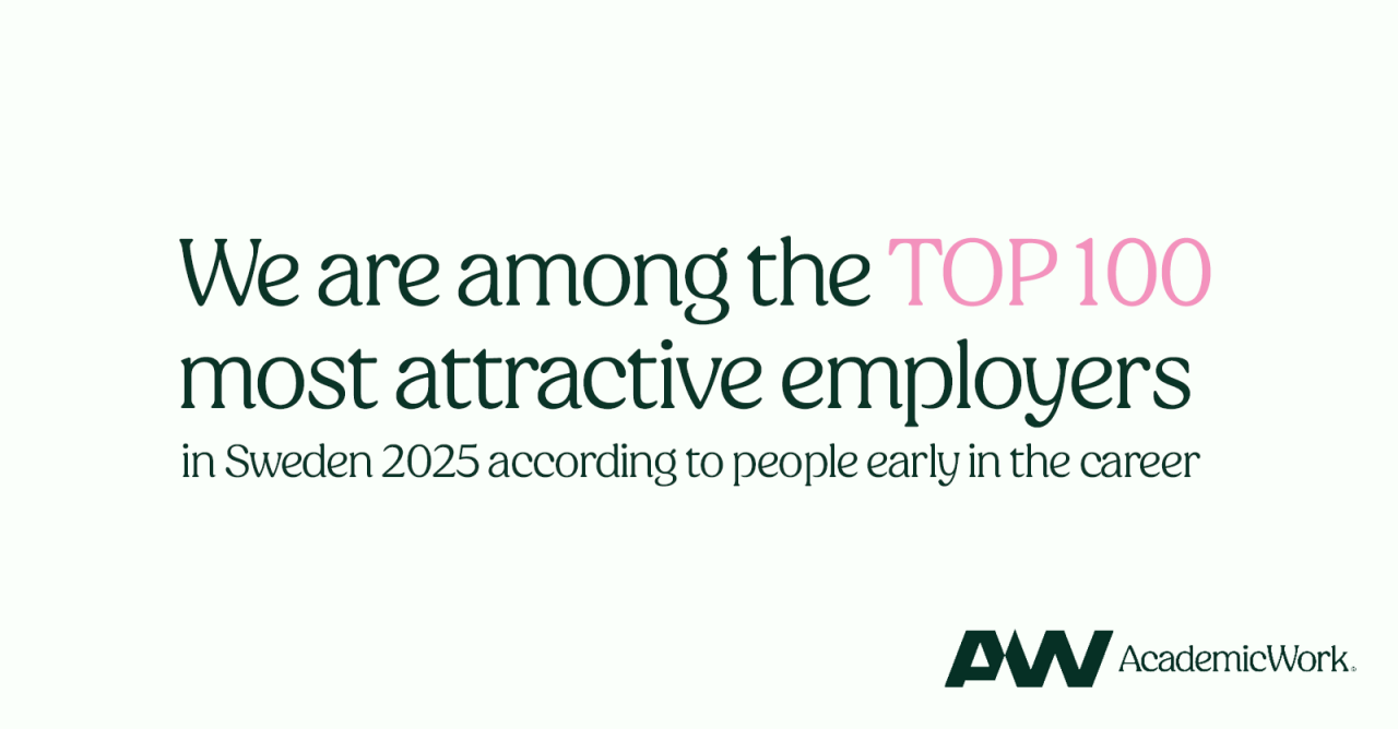 We are regularly recognized as a leading employer by a number of the most well-renowned employer branding and recruitment rankings, including in Academic Work’s Young Professionals Attraction Index, in Universum’s rankings and as a Karriärföretag.