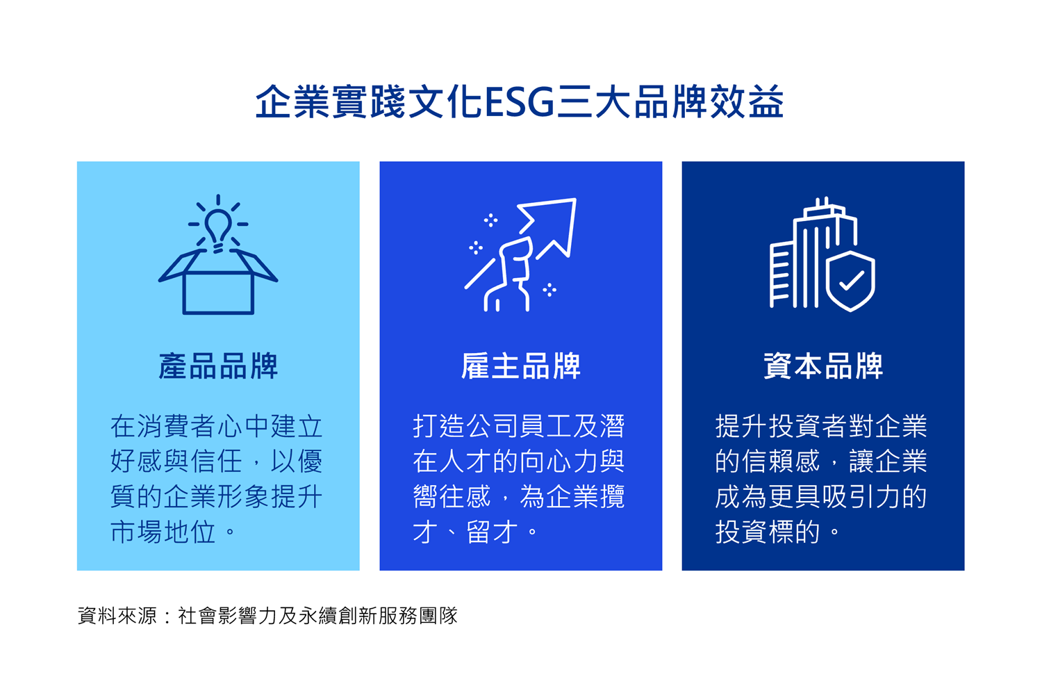 企業若能從文化的角度思考ESG,除更能掌握永續的需求內容與呈現方式,也能提出對品牌更具效益的做法。KPMG彙整企業實踐文化ESG所能帶來的三大品牌效益:
