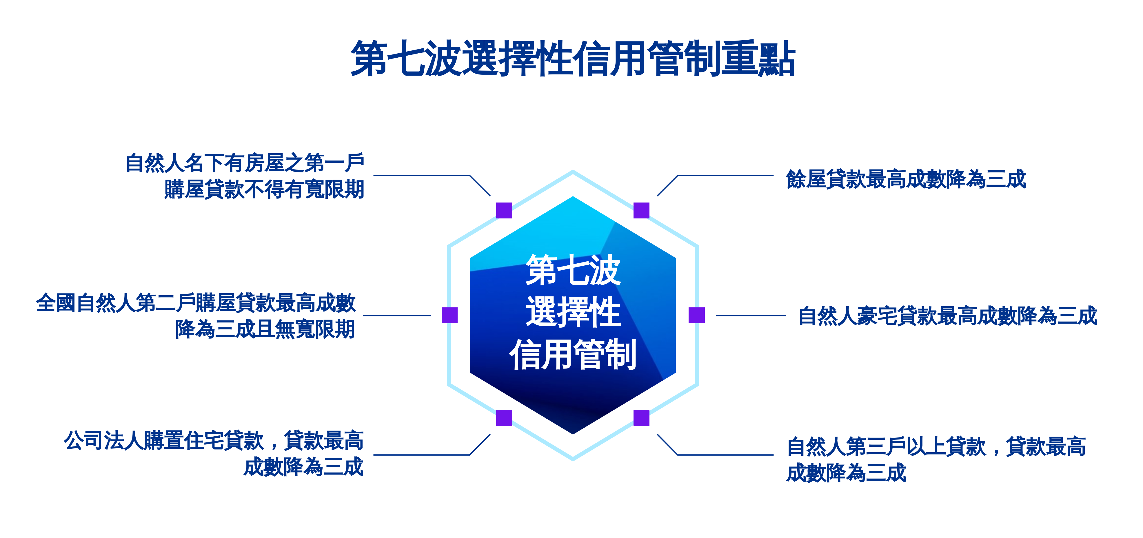 2. 自然人豪宅貸款、公司法人購屋貸款及餘屋貸款最高成數皆降為三成。