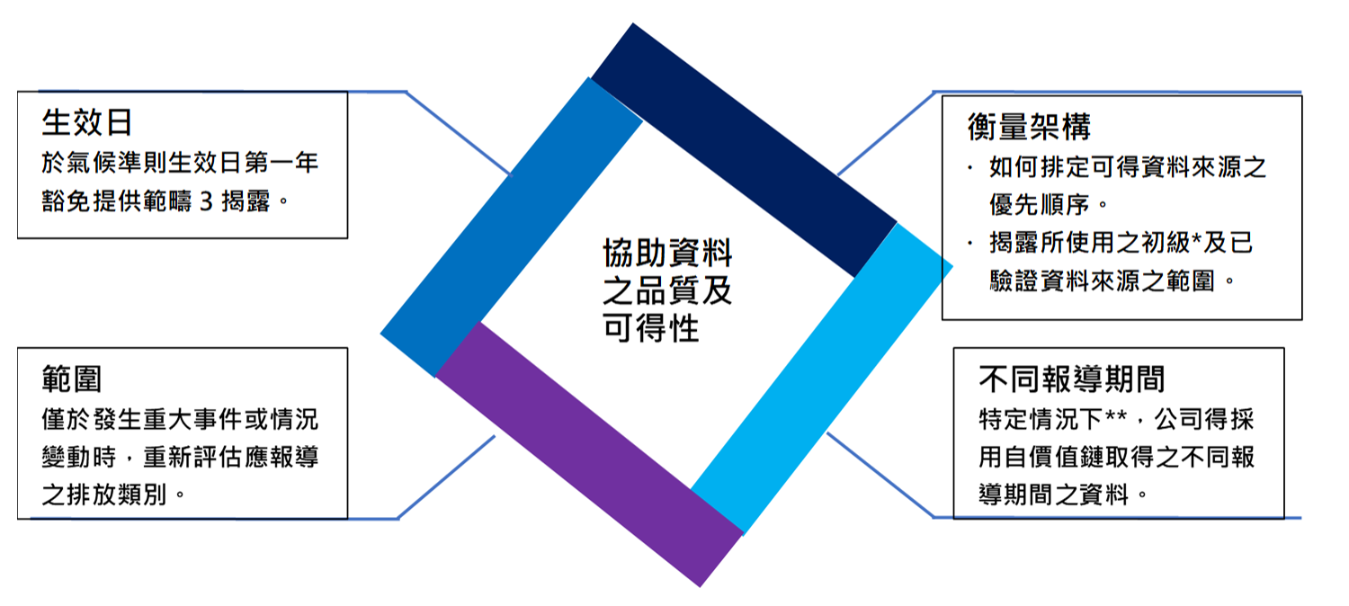 為協助對該等資料之可得性及品質有疑慮的公司報導範疇3 排放,該準則提供以下機制: