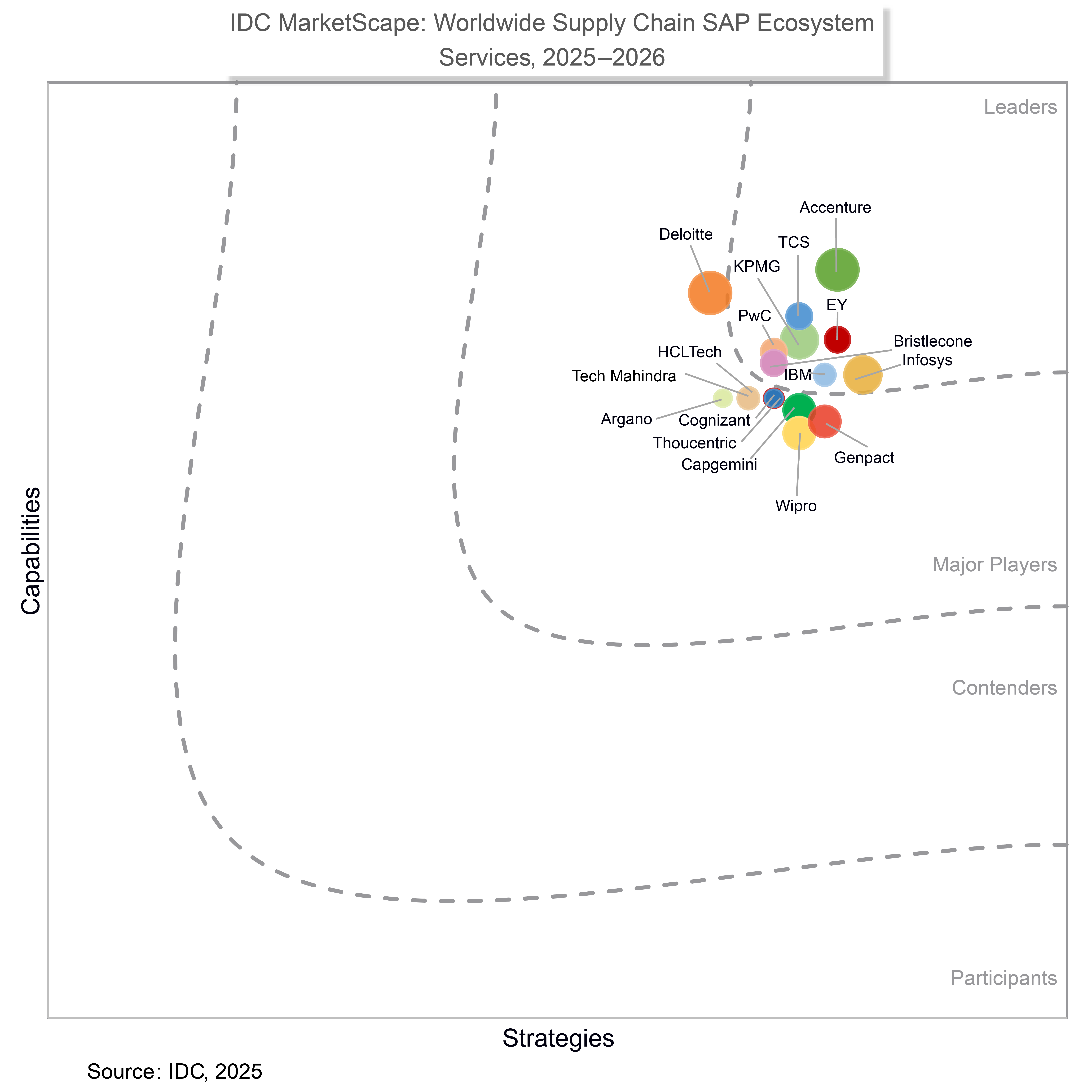 KPMG has been recognized as a ‘Leader’ in the IDC MarketScape: Worldwide Supply Chain SAP Ecosystem Services 2025–2026 Vendor Assessment (#US53932725, December 2025), which evaluates service providers supporting supply chain transformation across the SAP ecosystem.