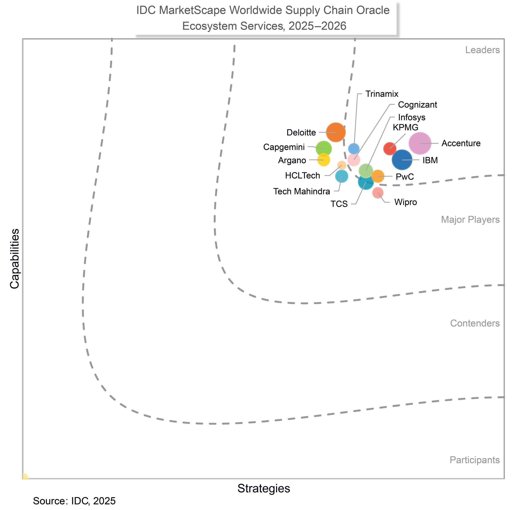 This 2025 IDC MarketScape for Worldwide Supply Chain Oracle Ecosystem Services looks at IT services firms that support the assessment, selection, and implementation of all suites of supply chain management tools. The research is both a quantitative and a qualitative assessment of the characteristics and capabilities impacting a vendor's success in delivering supply chain transformation to manufacturers and retailers.